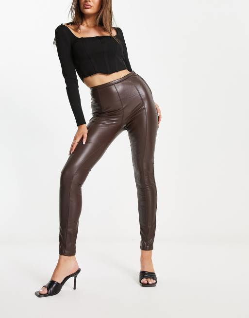 Dark brown leather top leggings, Burgundy Leather Look High Waist Leggings New Look top