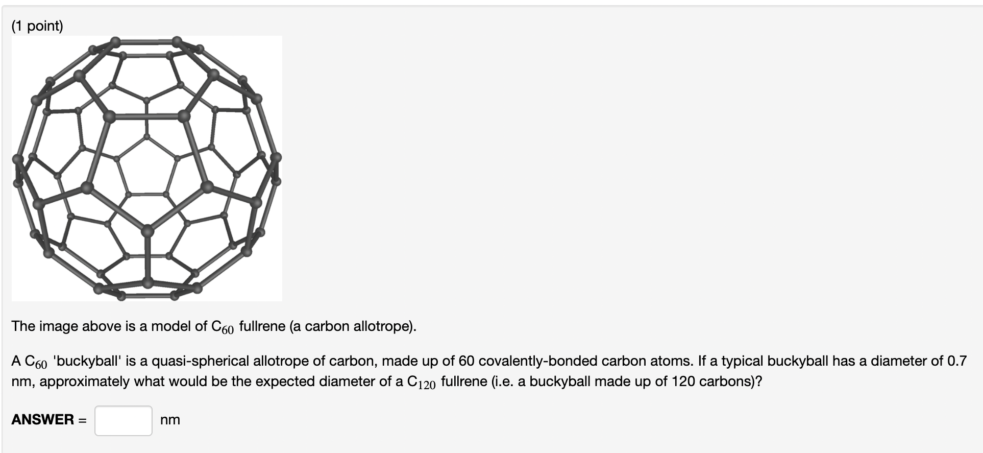 Diameter top of buckyball, Solved 1 point The image above is a model of C60 fullrene top