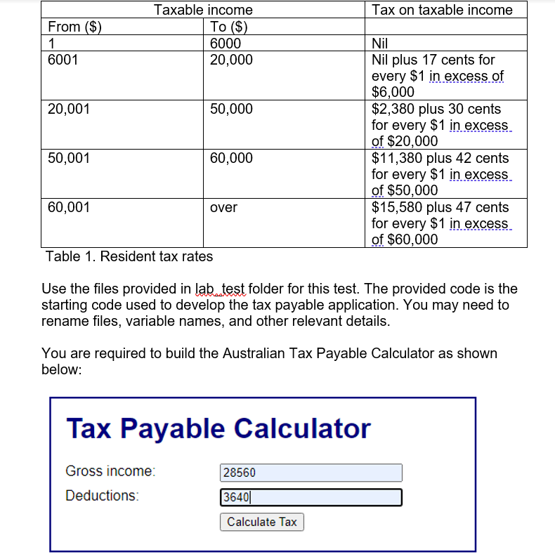 Australian top tax calculator, Solved Build the Australian Tax Payable Calculator using php top