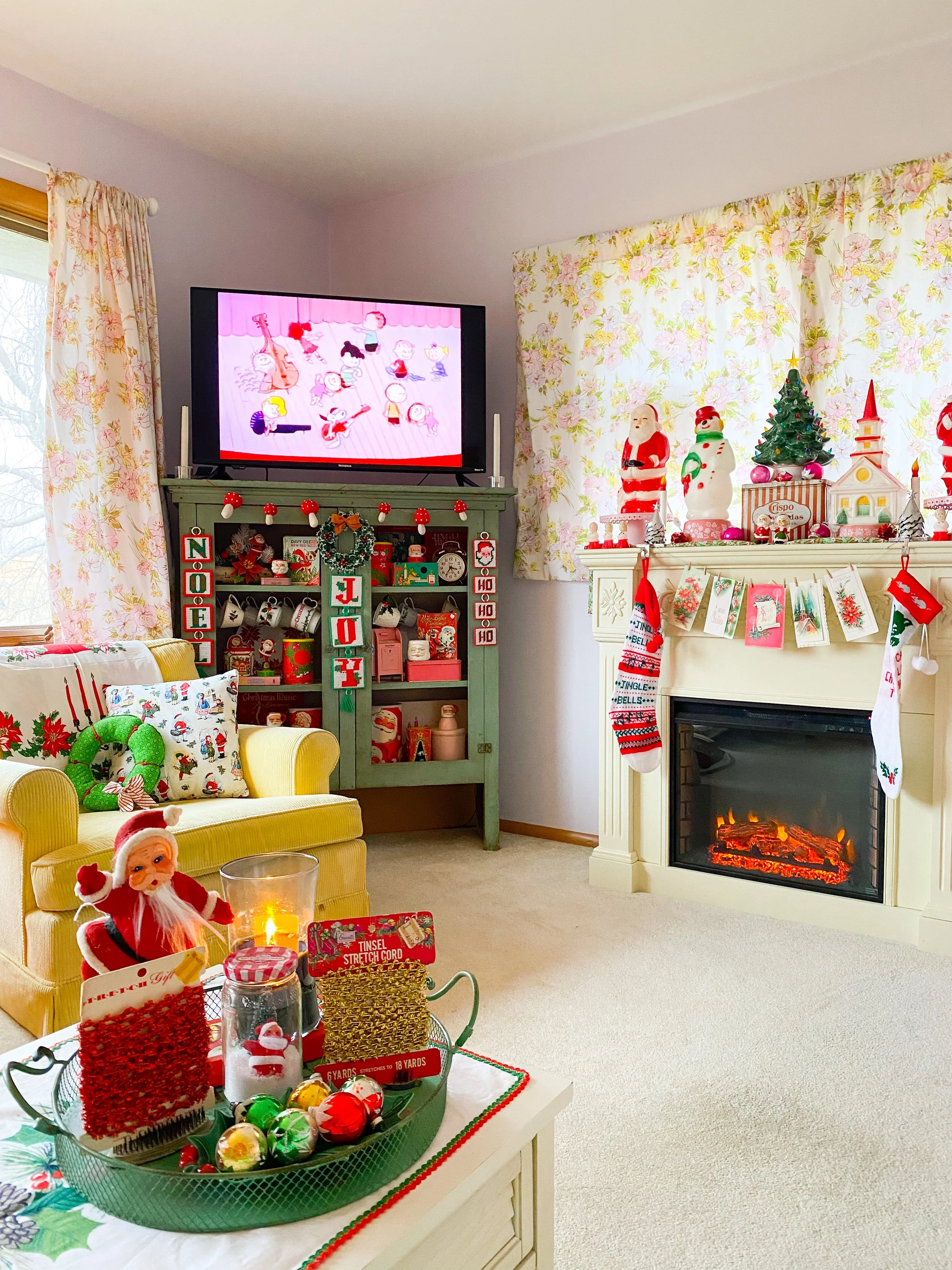 Living room top decorated for christmas, Vintage Christmas living room tour with decorating ideas Emily top