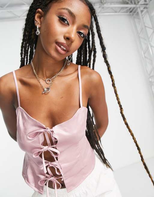 Dusty pink cami top top, Motel satin bow detail cami top in dusty pink ASOS top