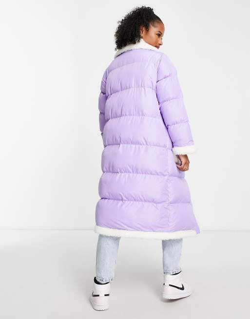 Miss Selfridge Petite borg contrast puffer maxi coat in purple