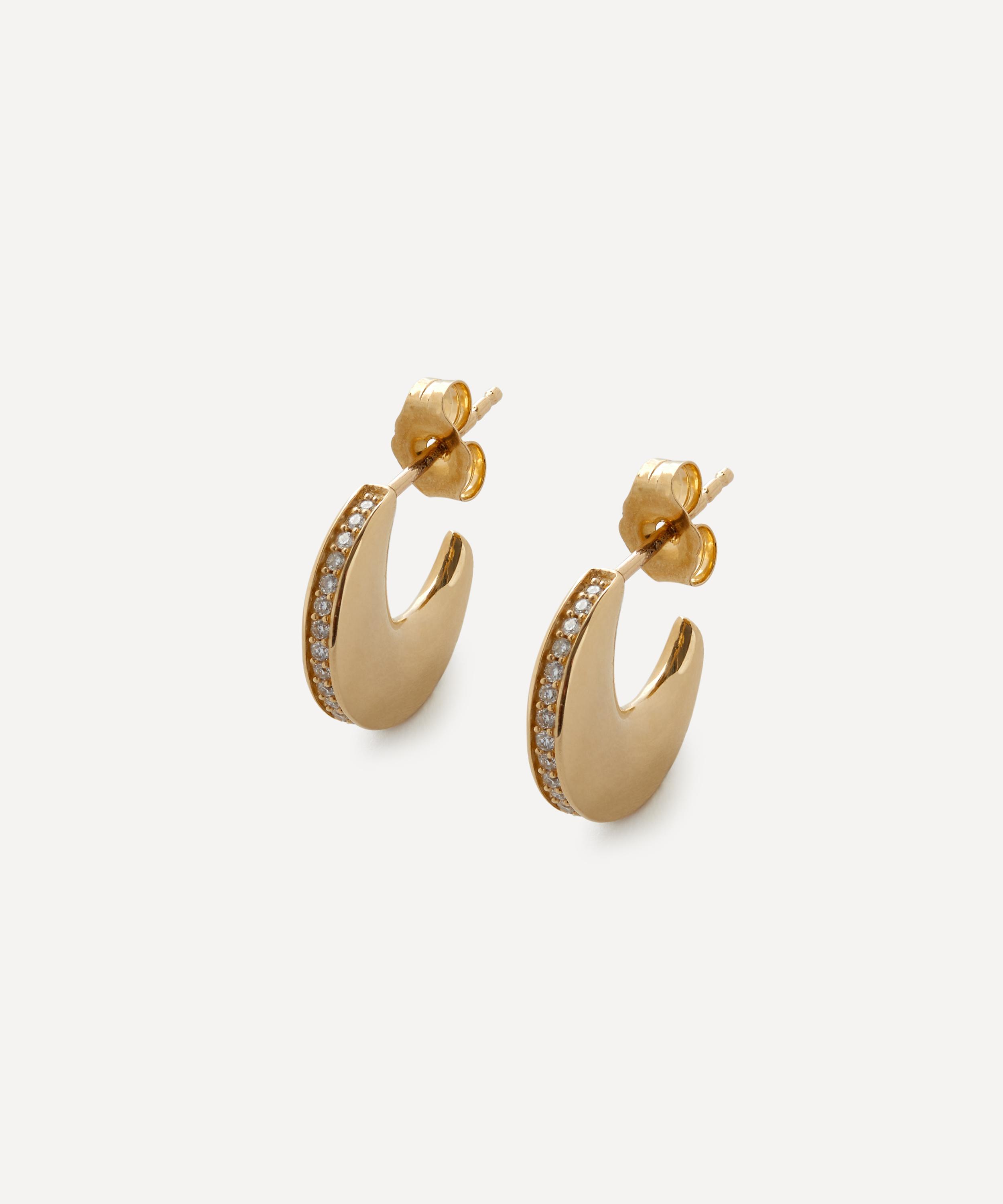 By Pariah 9ct Gold Diamond Linings Huggie Hoop Earrings Liberty