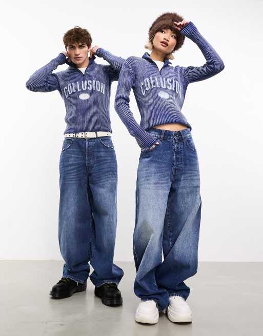 Asos top baggy jeans, COLLUSION x015 Baggy jeans met lage taille in rijke blauwe wassing top