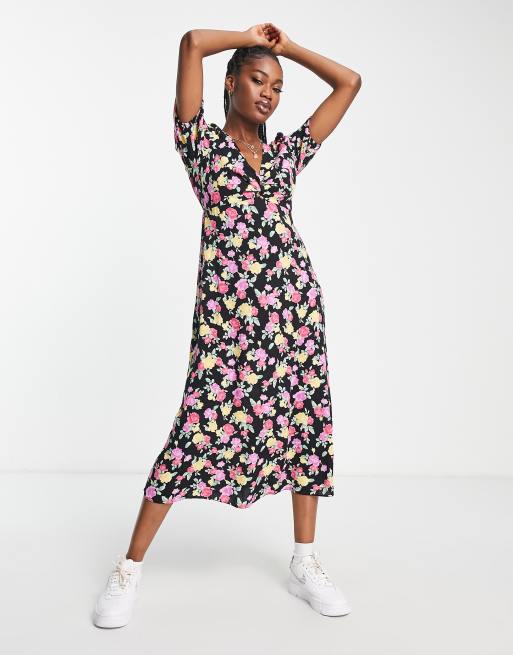Black floral midi top dress, Multi Floral Printed Short Sleeve Belted Wrap Midi Dress AX Paris top