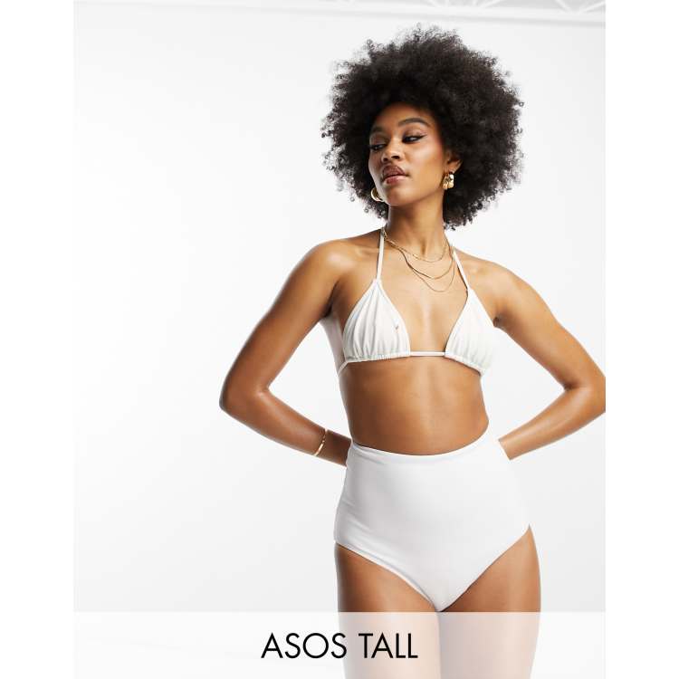 White high top waisted bikini bottoms, ASOS DESIGN Tall mix and match high waist bikini bottom in white top