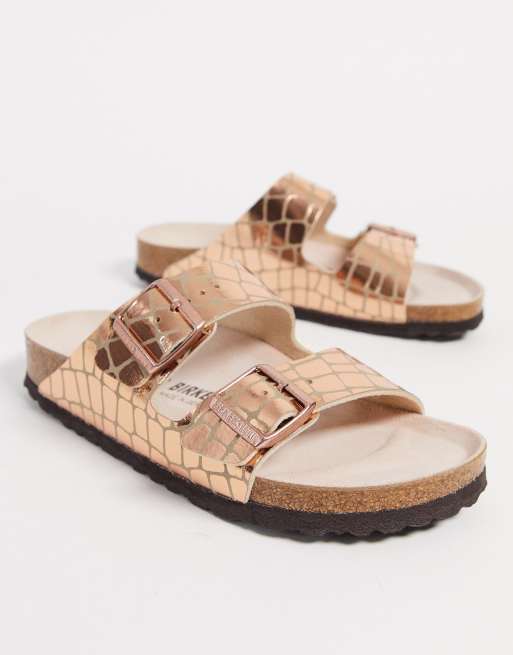Birkenstock Women s Metallic Rose Gold ARIZONA Soft Bed Sandals Sz