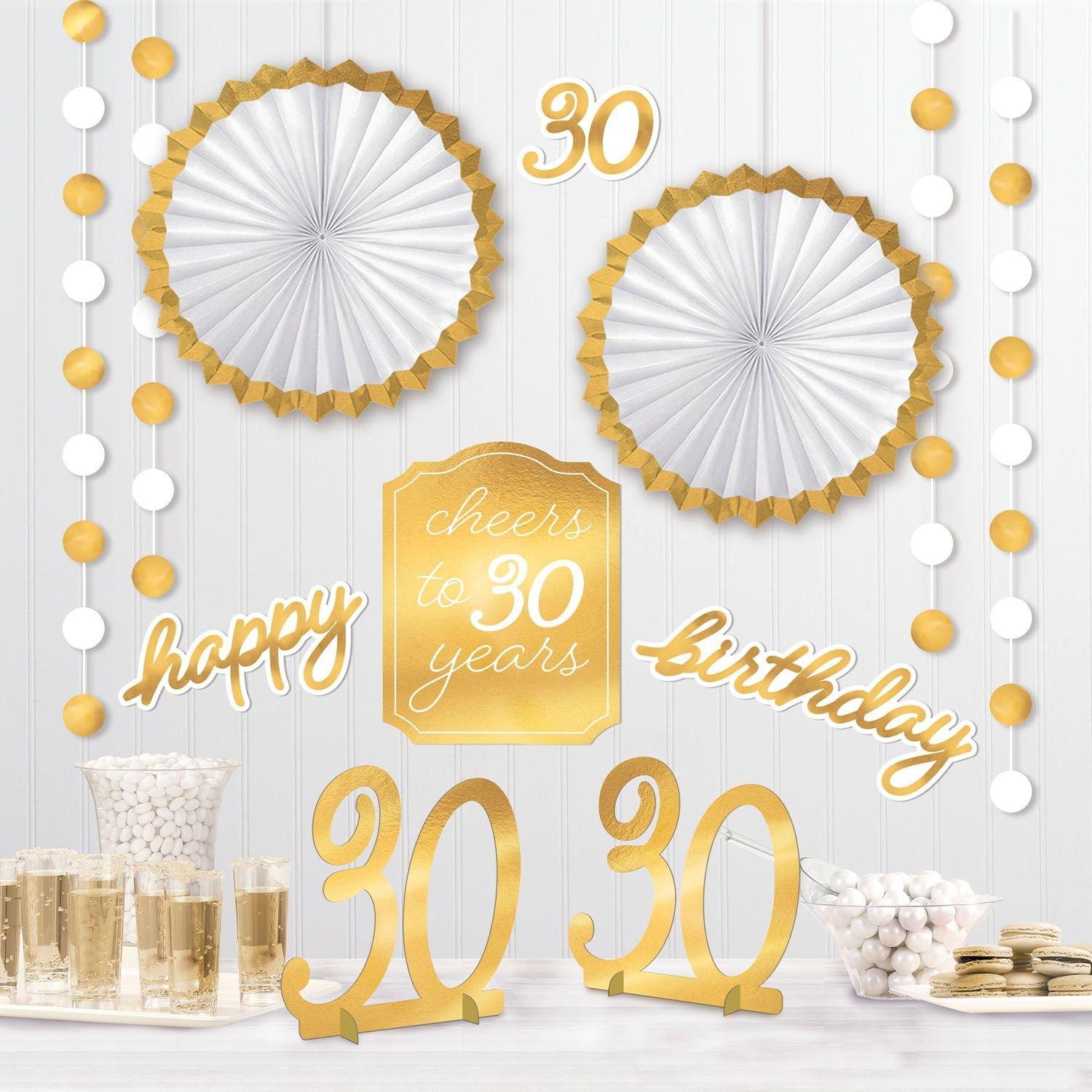 Metallic Golden Age 30th Birthday Room Decorating Kit 12pc