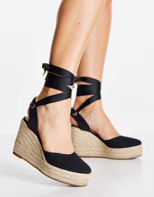 Suede Lace Up Espadrille Wedge Sandals Black Lily Lulu Fashion