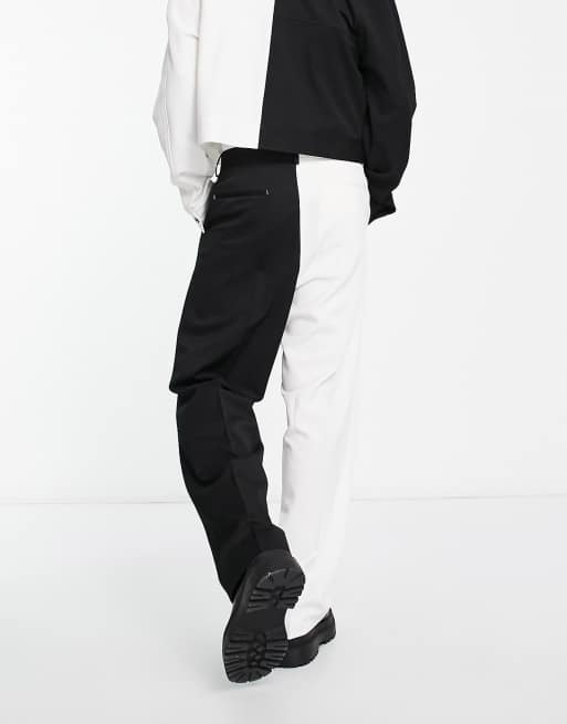 ASOS DESIGN smart co ord wide leg trousers in black and white colour block
