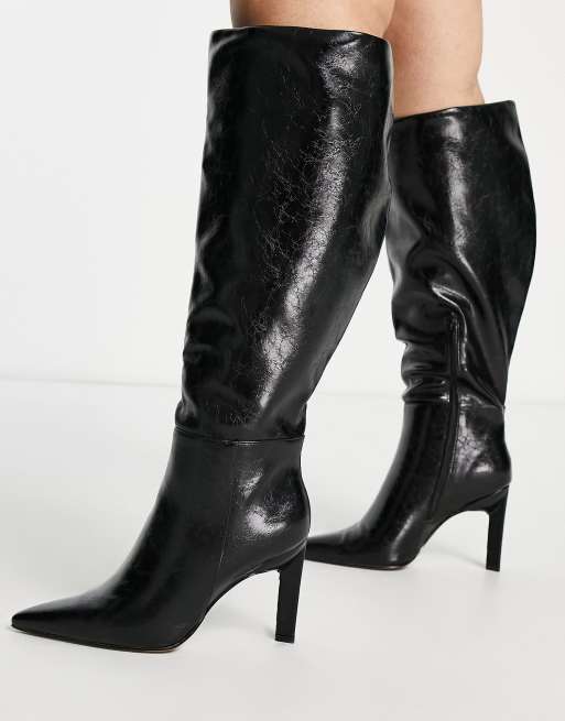 Asos knee high top boots, ASOS DESIGN Curve Cancun knee high boots in black top
