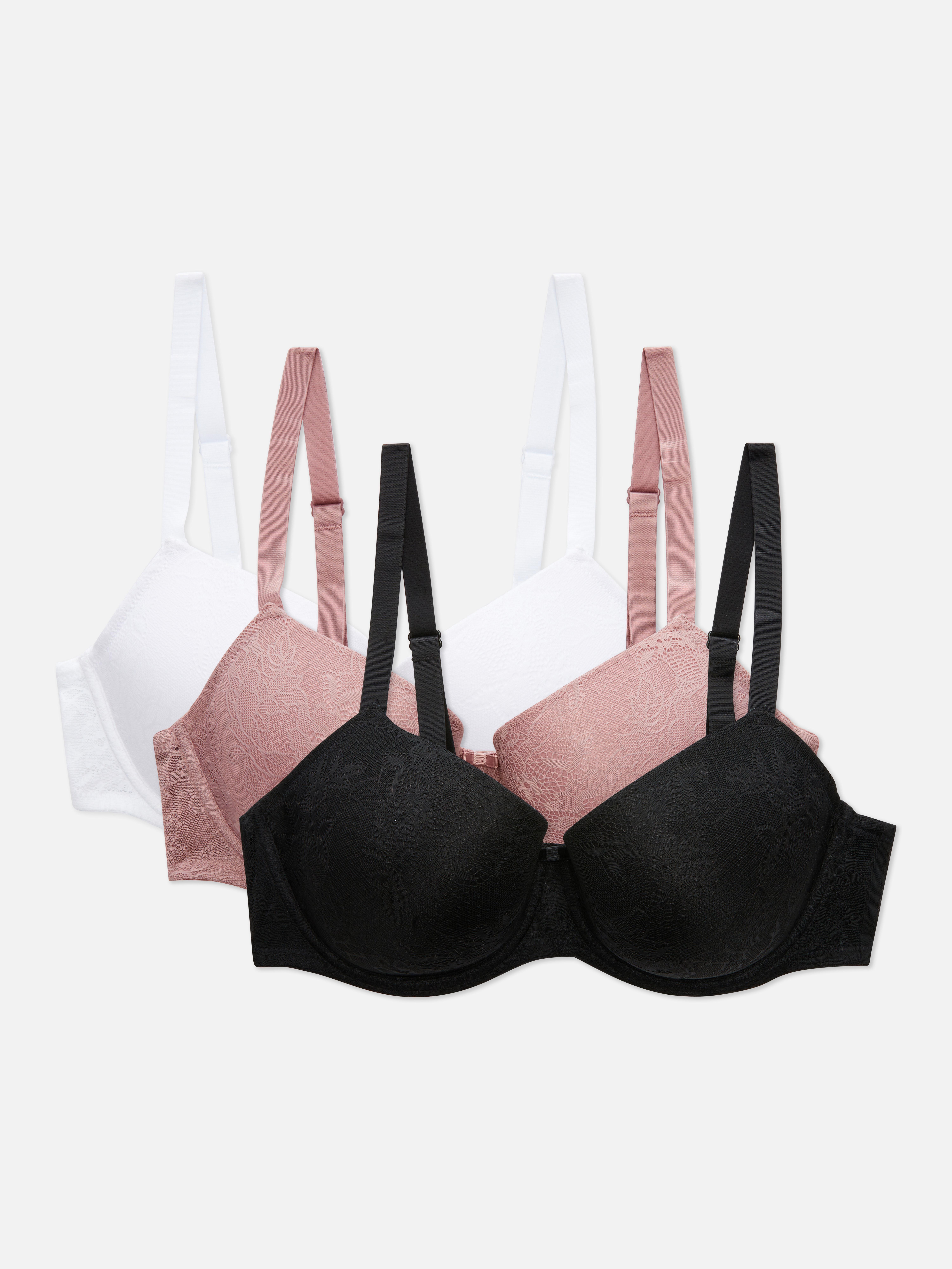 Primark bras top, Womens Black 3pk D F Lace T shirt Bra Primark top