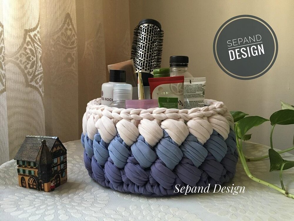 T shirt yarn top projects, Zpagetti t shirt yarn basket Puffy pattern top