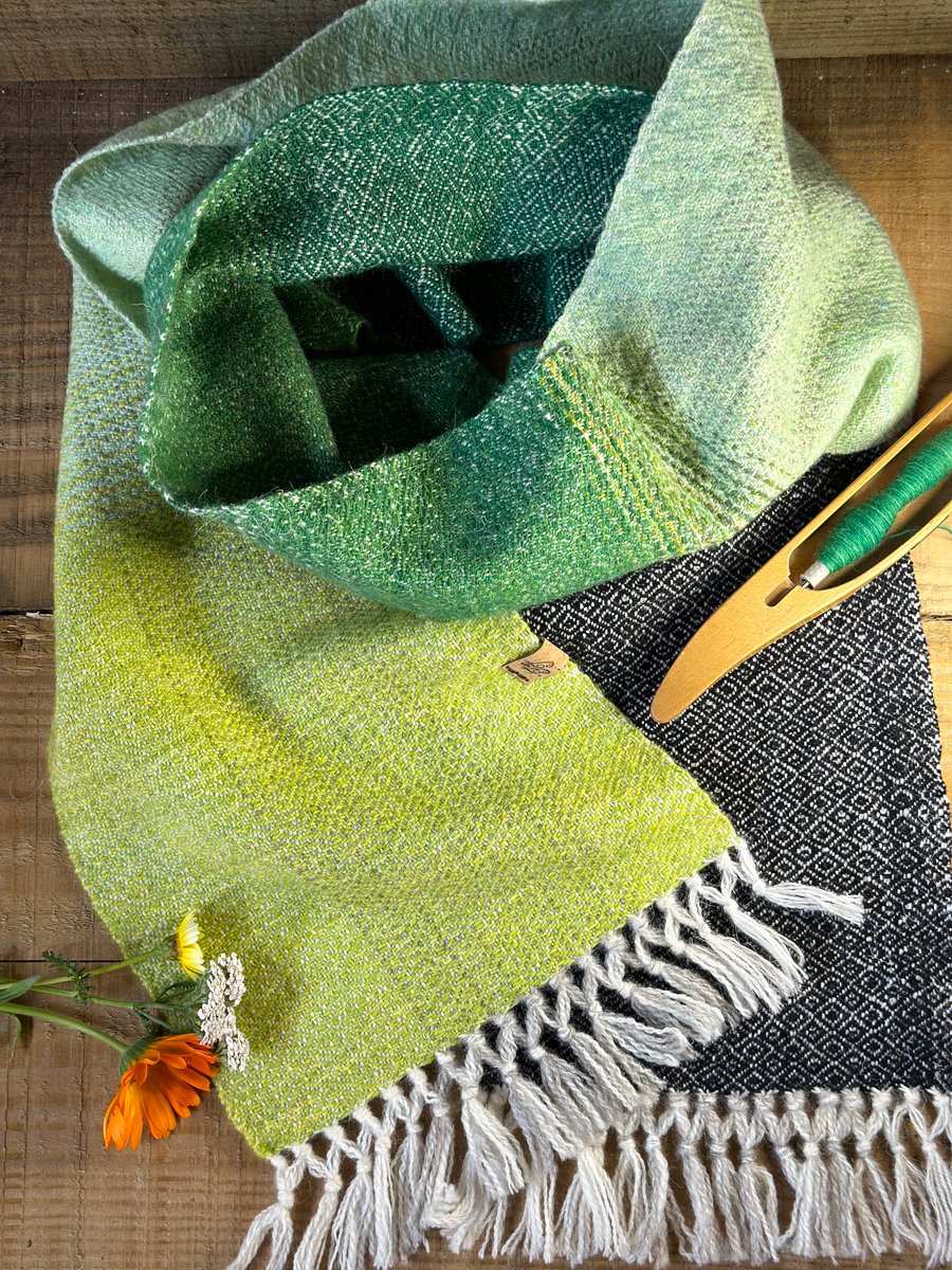 Handmade top wool scarf, British Wool Scarf in Shades of Green Bla Folksy top
