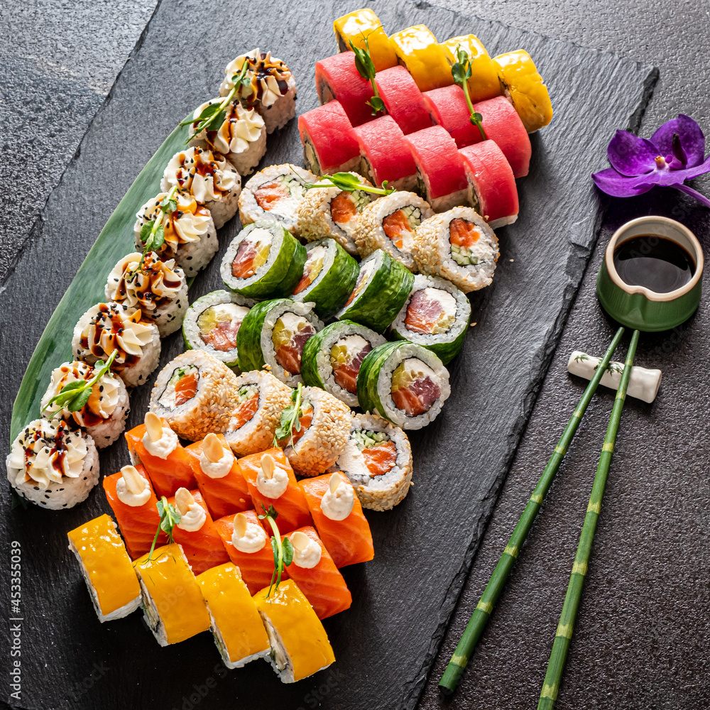 Sushi gourmet top, gourmet sushi on the black background Stock Photo Adobe Stock top