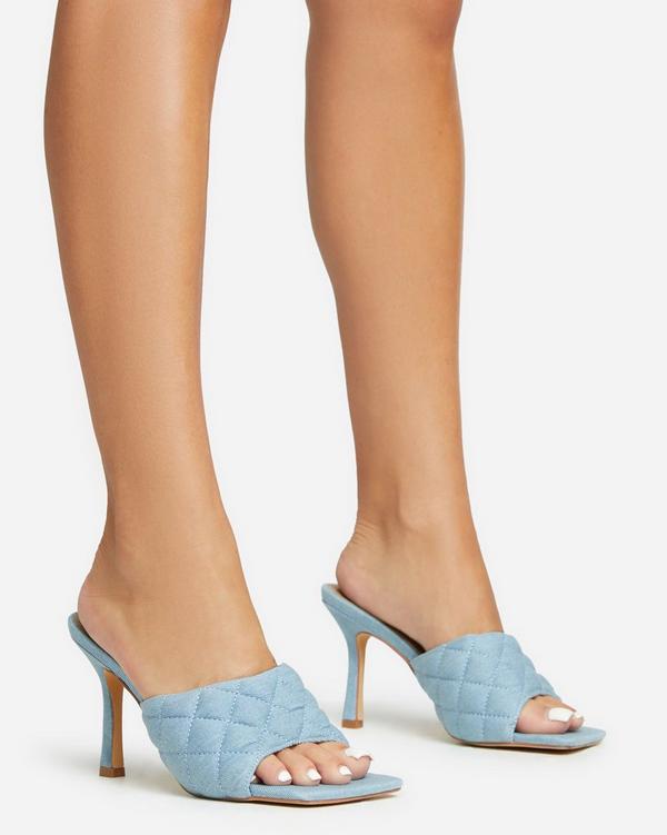 Tropez Square Toe Quilted Heel Mule In Blue Denim EGO