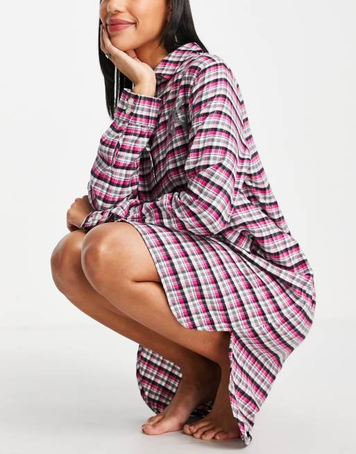 Pretty You London Brushed Cotton Plaid Nightshirt Bordeaux