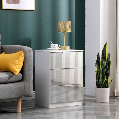 FurnitureHMD Mirror Glass 3 Drawer Bedside Table Nightstand