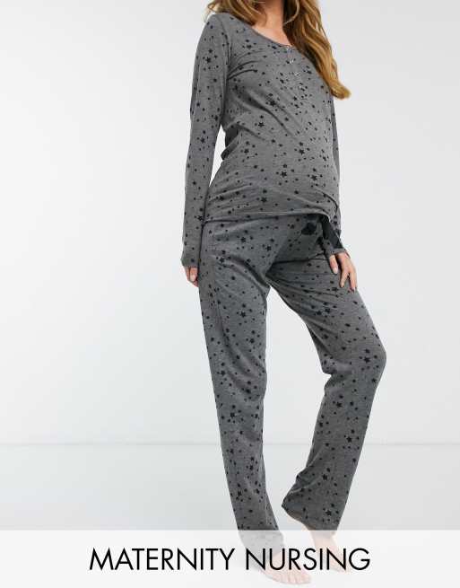 Nursing top pyjama set, Mamalicious Maternity Nursing pyjama set in grey smudge print ASOS top