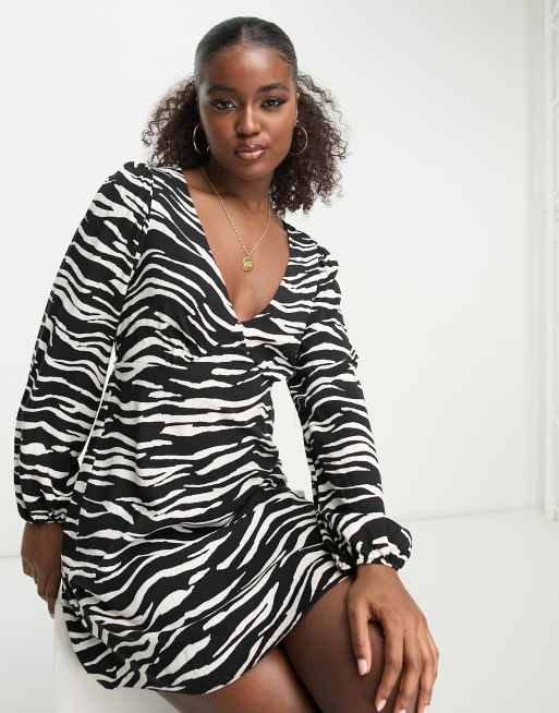 New Look long sleeve v neck mini dress in zebra print ASOS