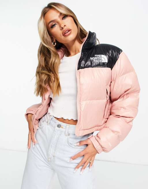 Crop north face top jacket, The North Face Womens Nuptse Cropped Jacket White Black top