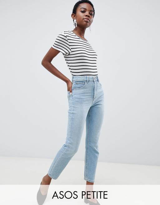 ASOS DESIGN Petite Farleigh high waisted slim mom jeans in light blue