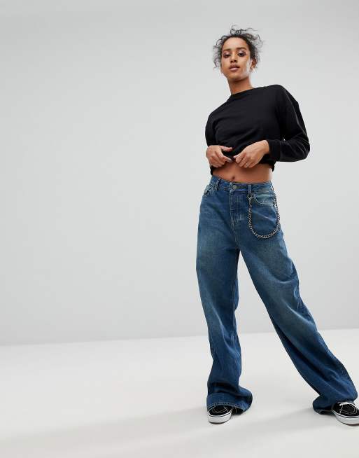 Skater top pants womens, COLLUSION x018 Unisex Y2K wide leg skater jeans with contrast top