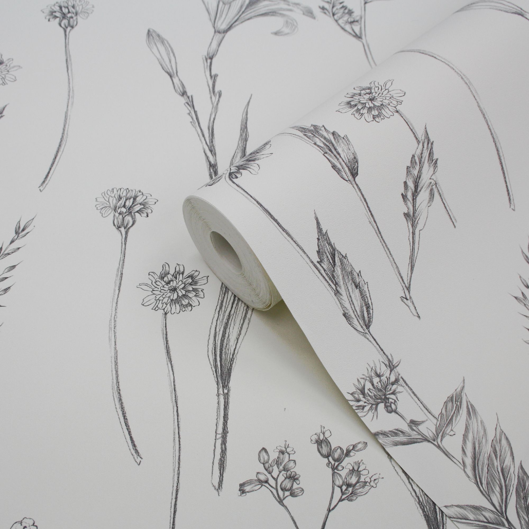 White top floral wallpaper, GoodHome Conyza Grey white Floral Textured Wallpaper Sample top