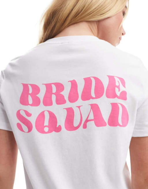 Pieces Bride Squad pink glitter back slogan t shirt in white