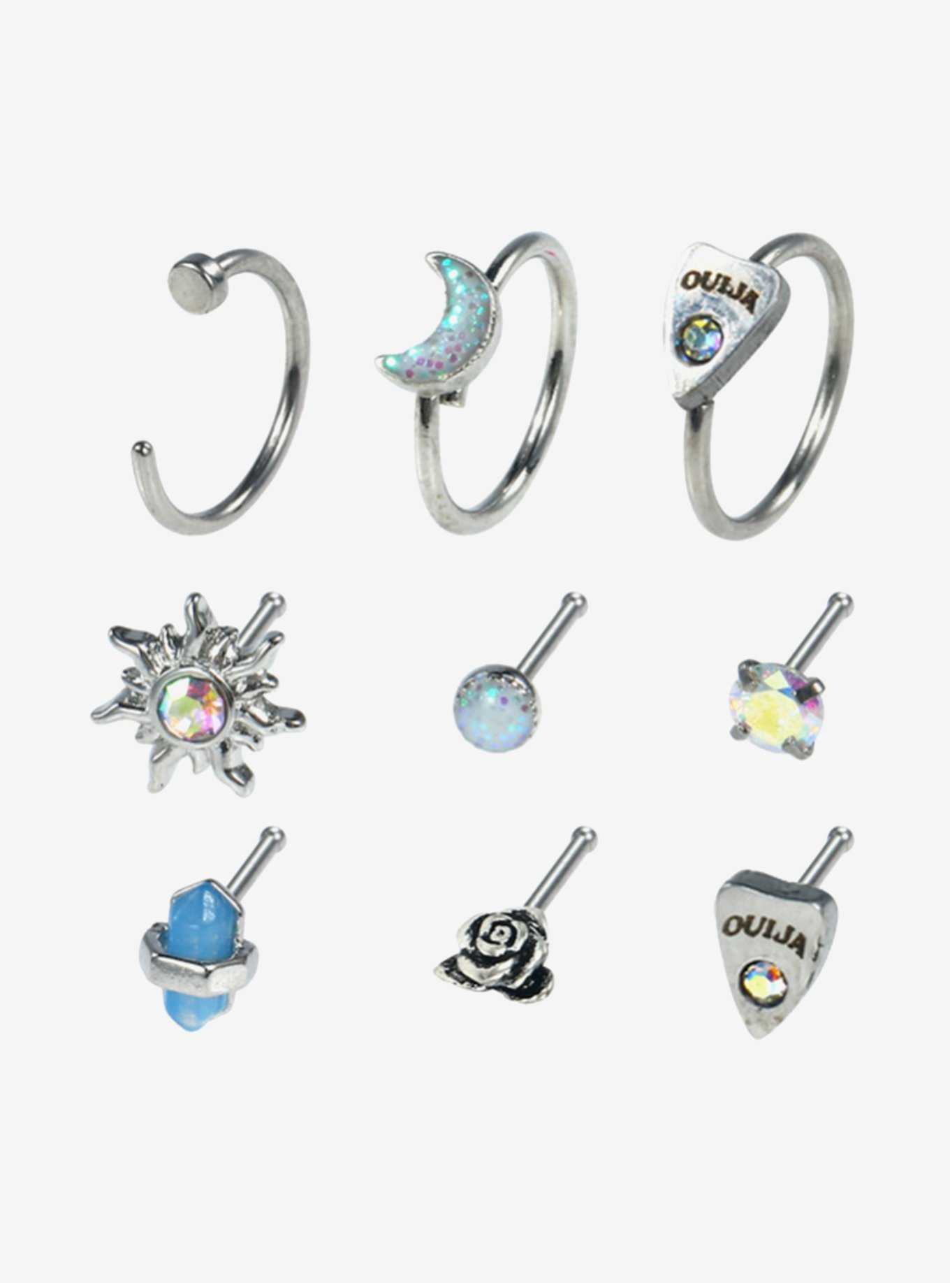 Steel Ouija Celestial Nose Stud Hoop 9 Pack