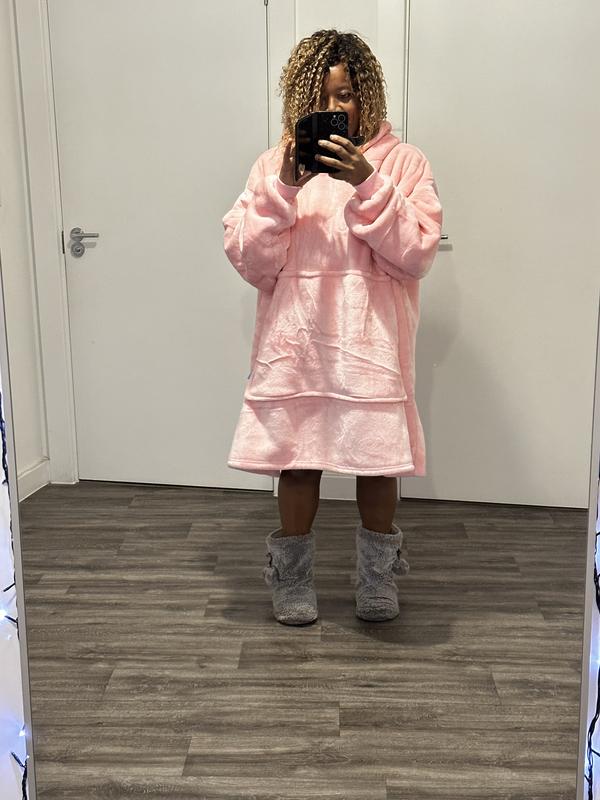 ONY Pale Pink Fleece Oversized Unisex Blanket Hoodie New Look