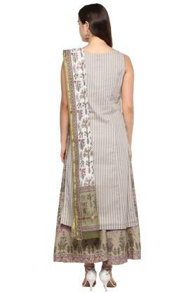 Buy BIBA Women s Beige Cotton A Line Kurta Palazzo Suit Set at