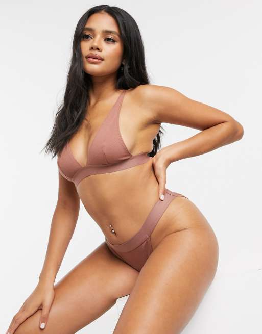 Underwear asos top, ASOS DESIGN Effie cotton ribbed high waisted brazilian underwear with elastic top