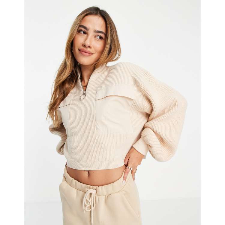 Mango jumpers top, Mango jumper with half zip and front pocket detail in beige ASOS top