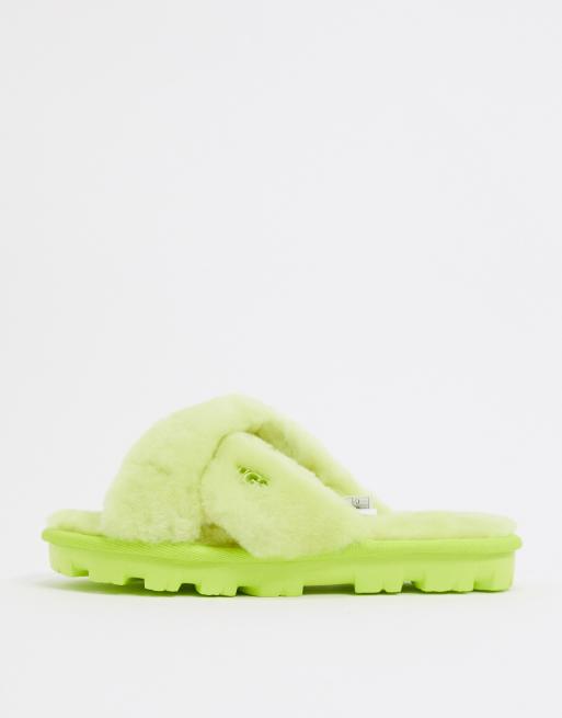 Lime green ugg top slides, UGG fluffita clear slippers in lime top