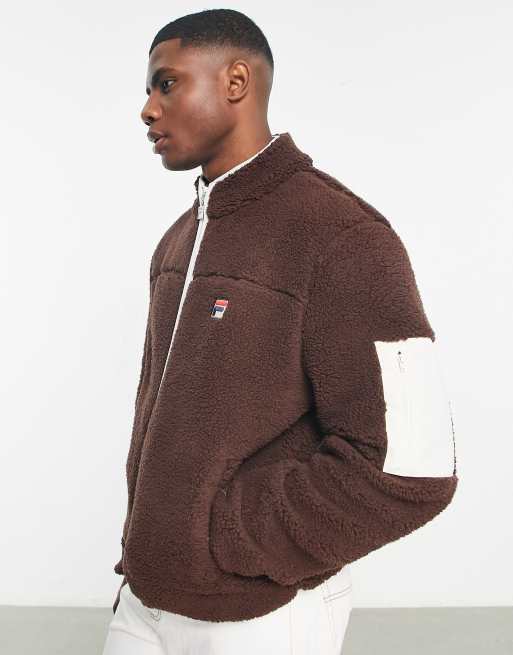 Fila Women s Tan Sherpa Full Zip Teddy Jacket with Large Pockets