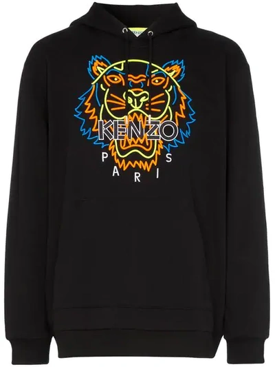 Kenzo Neon Tiger Embroidered Hooded Cotton Jumper In Black ModeSens
