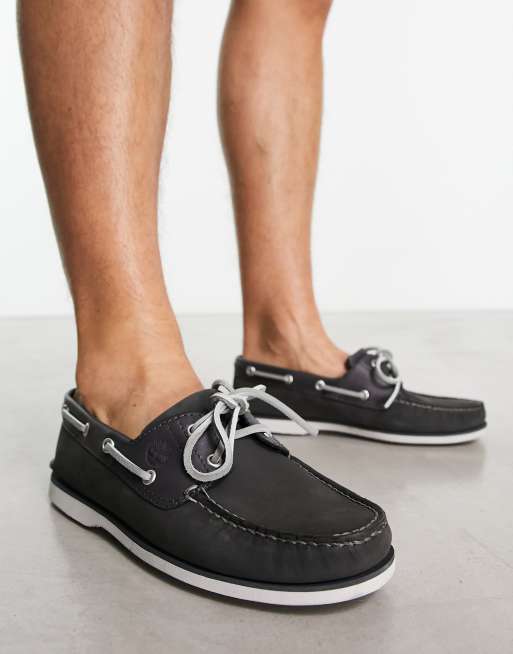 Timberland classic 2 eye boat shoes in dark grey leather ASOS