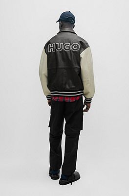 HUGO Leather varsity jacket with oversized embossed logo