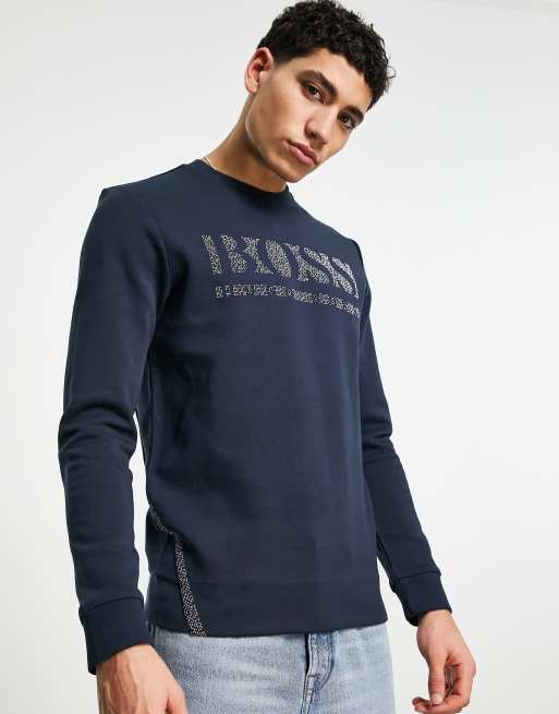 BOSS Athleisure Salbo Pixel Iconic slim fit sweatshirt in navy