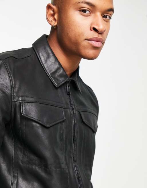 Boss orange top leather jacket sale, BOSS Orange by HUGO BOSS Jeeper Leather Biker Jacket in Black top