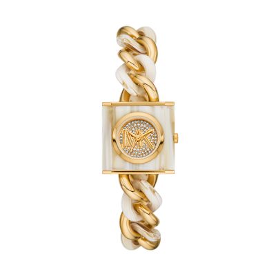 Michael Kors MK Chain Lock Three Hand Alabaster and Gold Tone