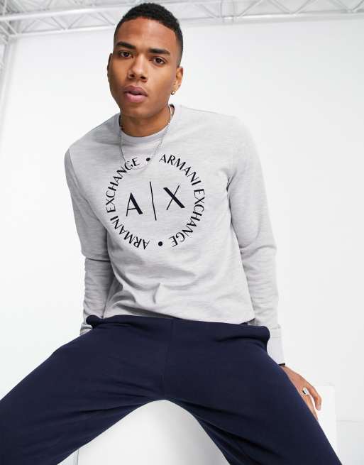 Armani Exchange circle logo crew neck sweat in grey