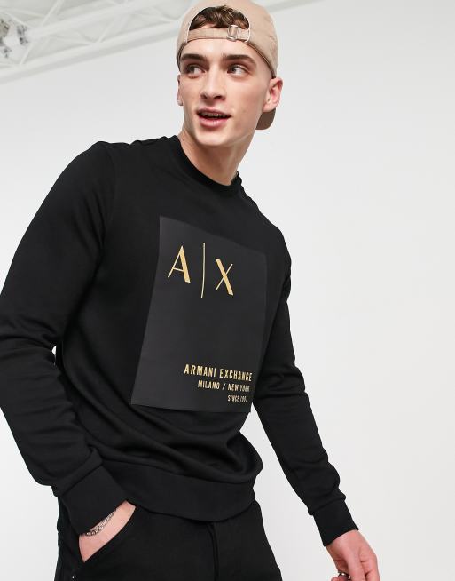 Armani Exchange Men s Long Sleeve Logo on Front Round Neck Pullover Sweater