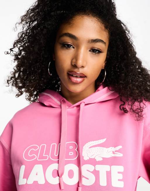 Lacoste cropped oversized fit logo hoodie in mid pink