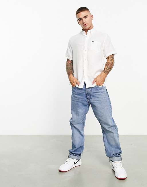 Lacoste logo linen shirt sleeve shirt in white ASOS