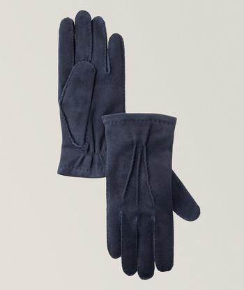 Navy top suede gloves, Uomo Artik Sheepskin gloves with hand stitching top