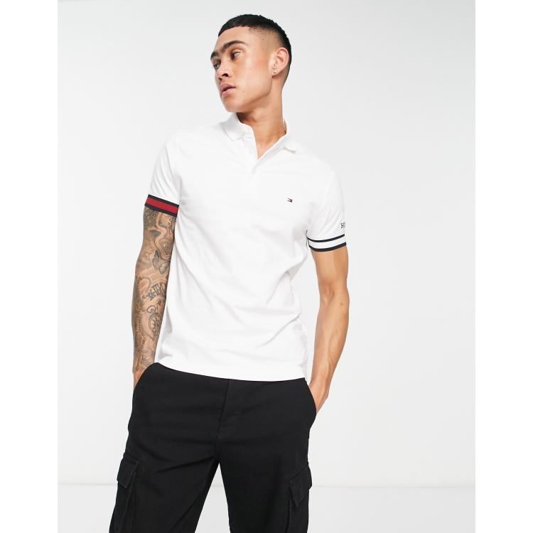 Tommy Hilfiger flag logo cuff sleeve polo shirt in white