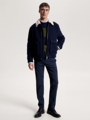 Sherpa Collar Flap Pocket Varsity Jacket Blue Tommy Hilfiger