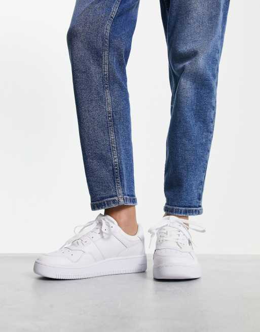 Tommy Jeans leather flag logo retro basket trainers in white